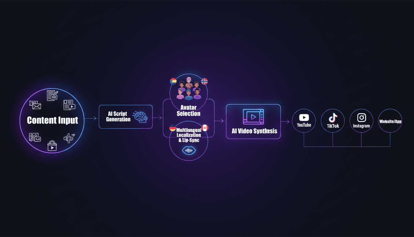 Modern platforms streamline content workflows. Upload product information, links, or topic outlines for AI script generation that produces conversion-optimized content matching your brand voice. Select your configured avatar and voice, then generate finished videos.