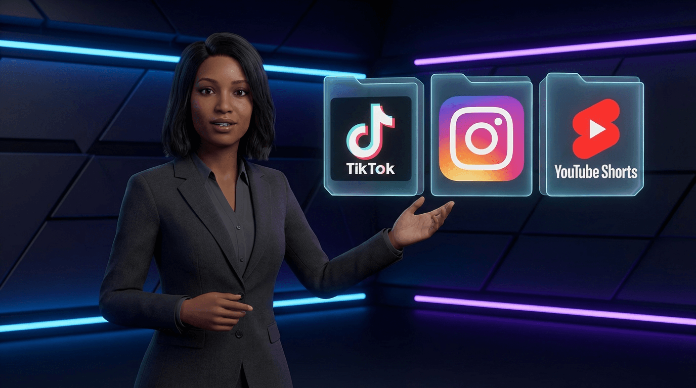 AI digital avatar presenting video content optimized for multiple social media platforms