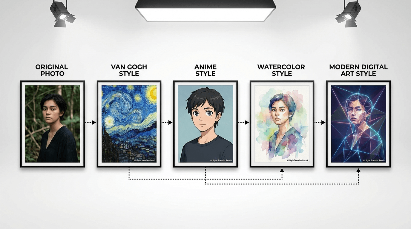 Master AI style transfer technology to transform ordinary photos into stunning artistic creations. Complete guide covering tools, techniques, and commercial applications.