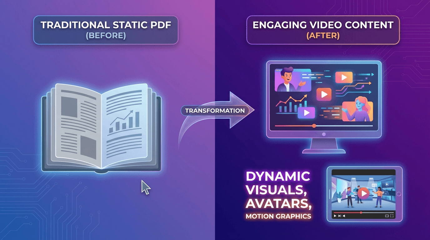 This guide walks you through everything you need to know about converting PDFs into videos using AI, from understanding how the technology works to choosing the right platform for your specific needs.