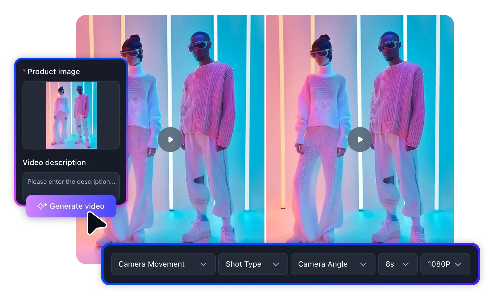 Convierte con un clic la imagen principal del producto en videos con rotación 360° y primeros planos de detalles, mejorando la experiencia visual y la tasa de conversión.