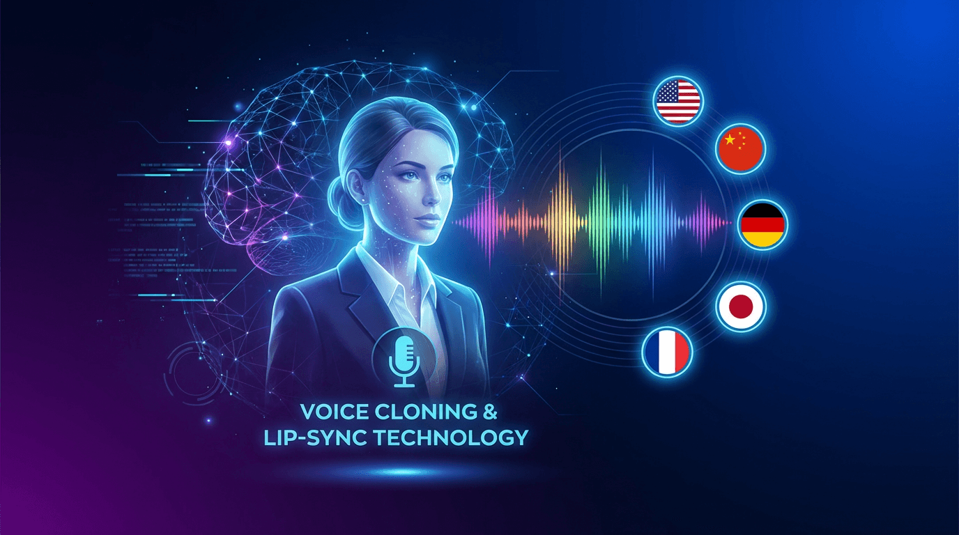 AI avatar with voice cloning and lip-sync technology for multilingual video