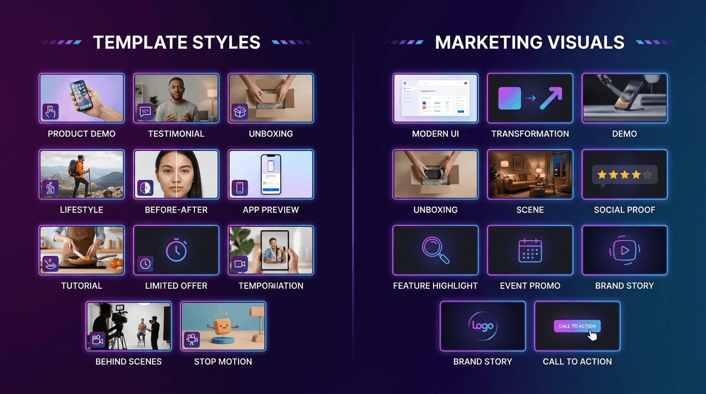 Ecommerce video ads work because they show rather than tell. The 10 templates in this guide—product demos, lifestyle videos, before-after transformations, UGC testimonials, unboxing, tutorials, comparisons, problem-solution, social proof compilations, and spokesperson presentations—cover every conversion objective and product type.