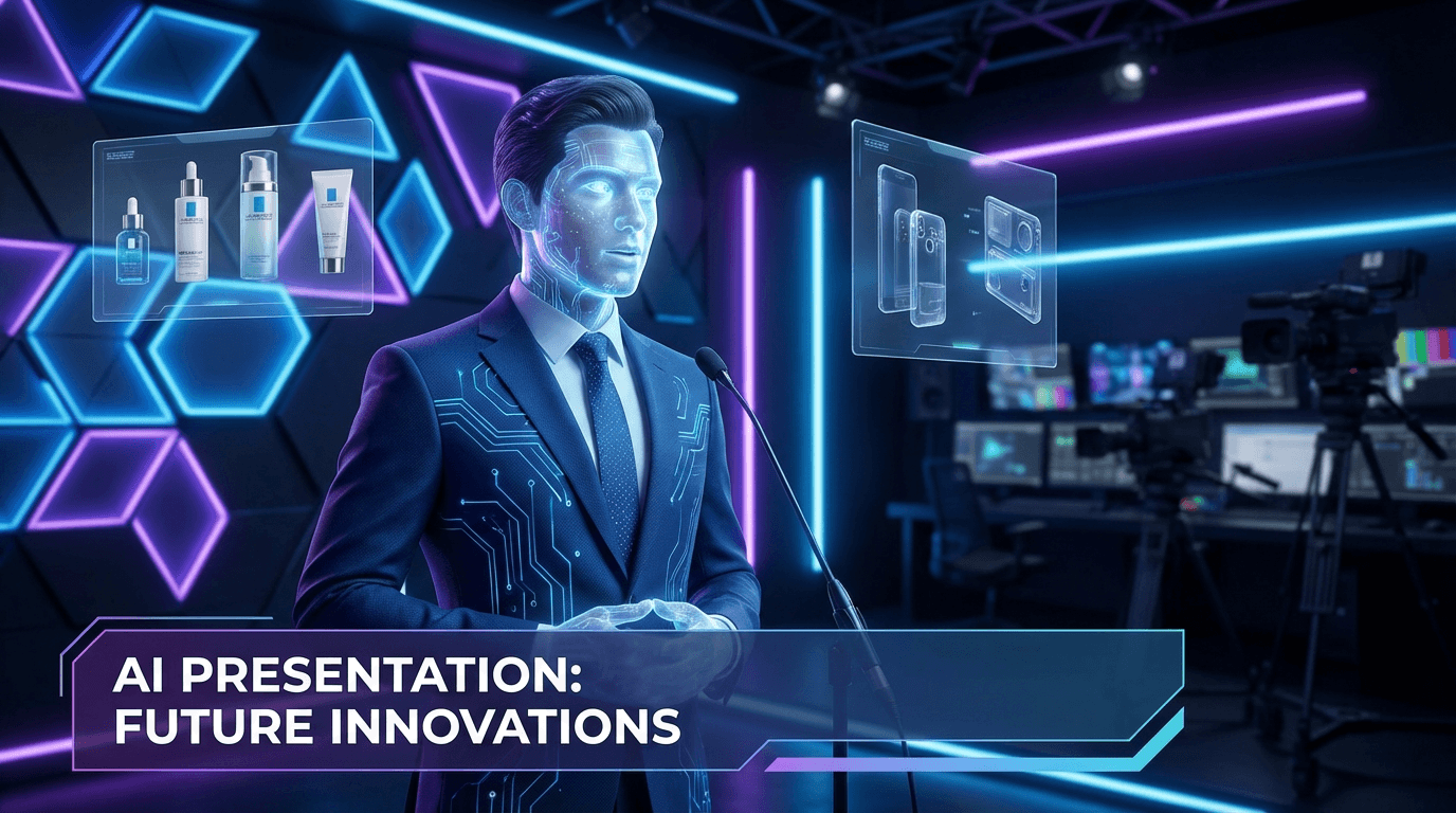 Modern production uses AI avatar and voice technology to create presenter videos without filming, enabling rapid iteration and multilingual versions.