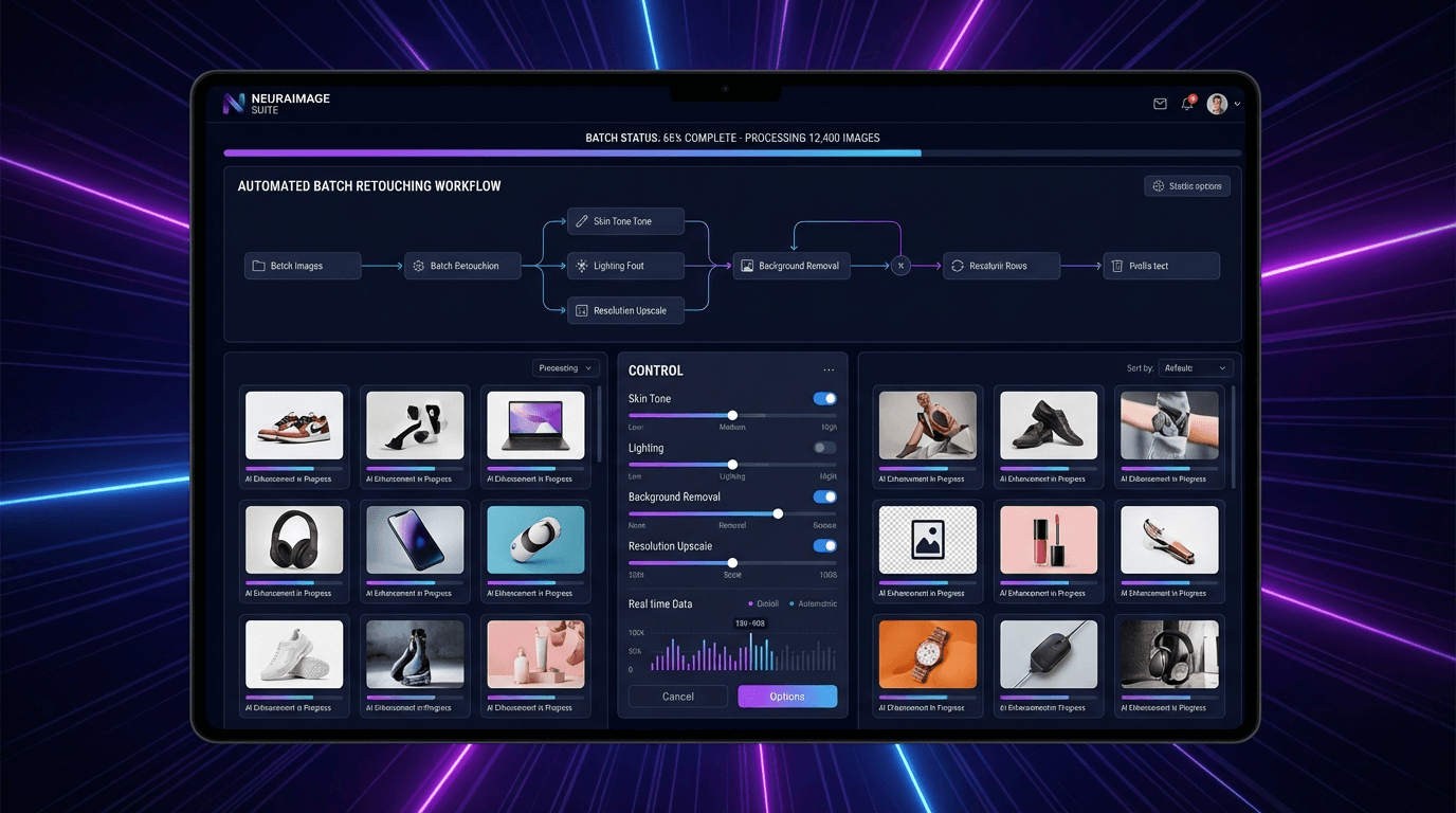 TL;DR: AI image retouching uses machine learning algorithms to automatically enhance product photos by removing imperfections, adjusting lighting, refining colors, and improving overall quality in seconds. This technology reduces editing time by up to 96% while maintaining professional studio-grade results, making it essential for e-commerce businesses and content creators who need consistent, high-quality visuals at scale.