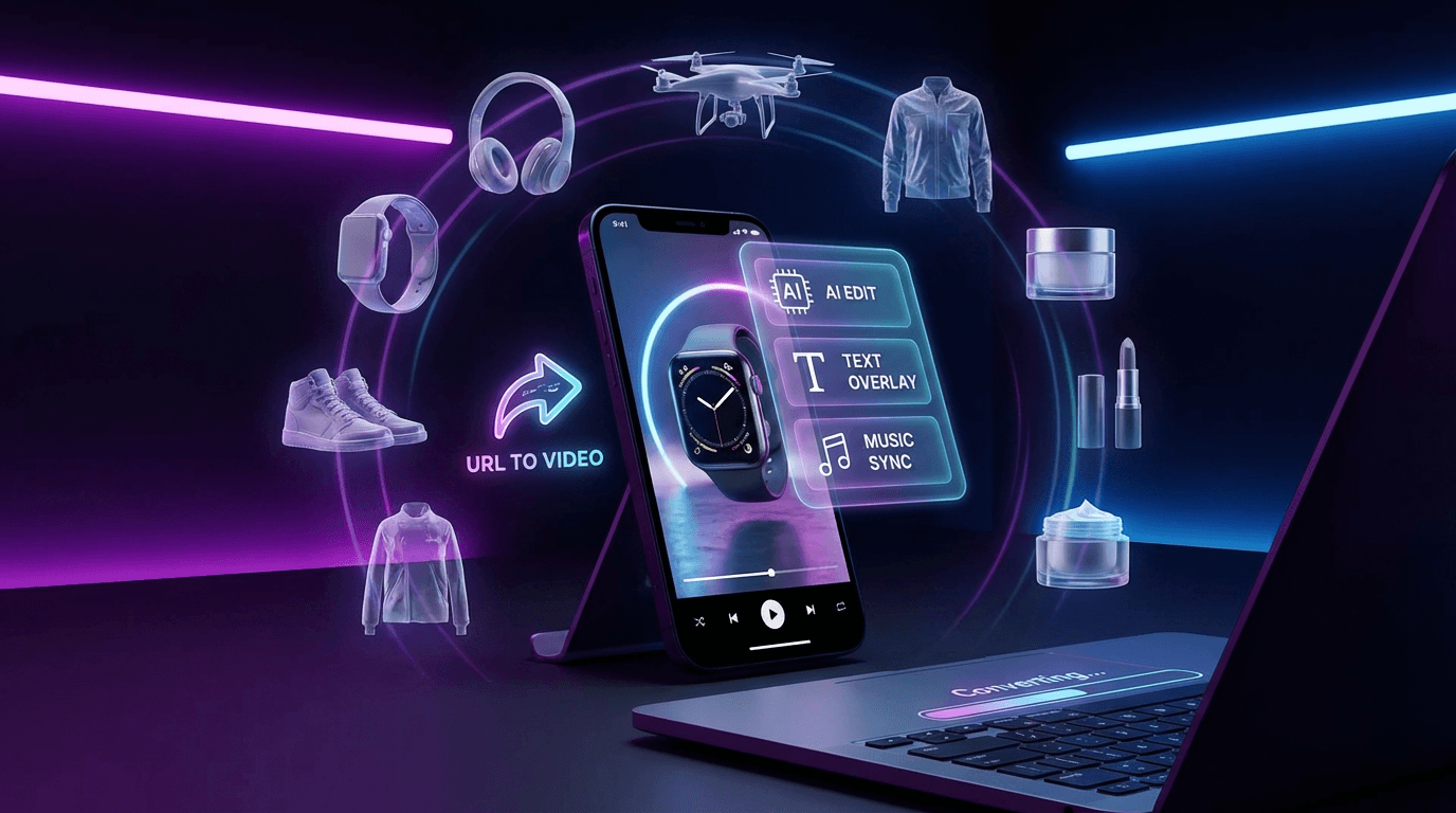 For cross-border e-commerce merchants, the fastest workflow starts with product URLs. One-click conversion transforms existing listings into video content.