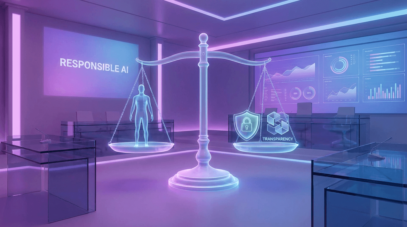 Balance scale representing ethical considerations in AI digital human technology